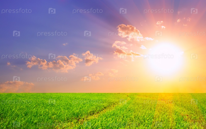 Заход солнца в поле
