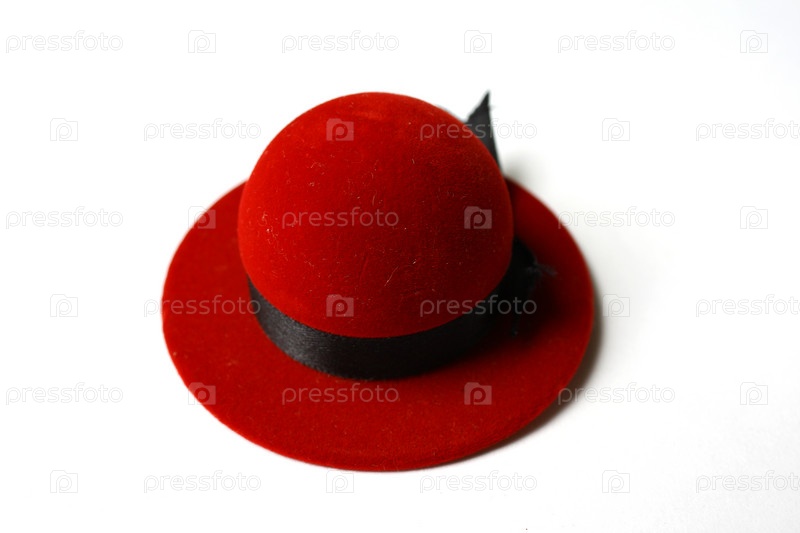 Коробка для подарка в виде красной шляпы с черной лентой