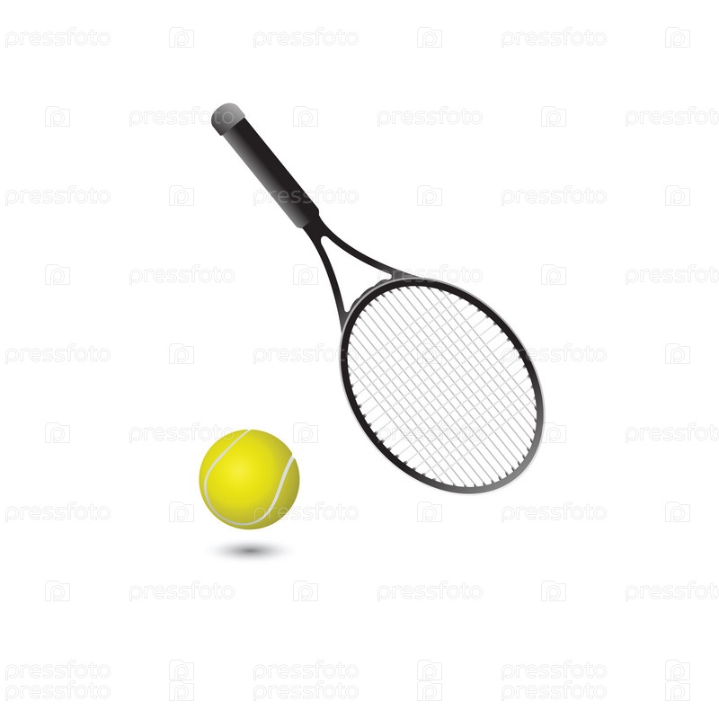 Теннисный мяч и теннисная ракетка на белом фоне