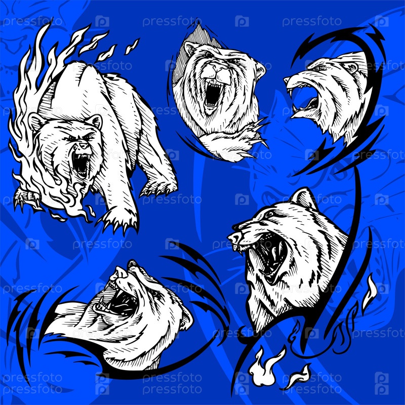 Разъяренные полярные медведи на синем фоне, вектор