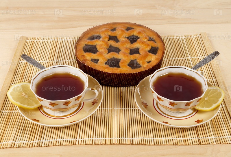 Чашки с чаем и пирог