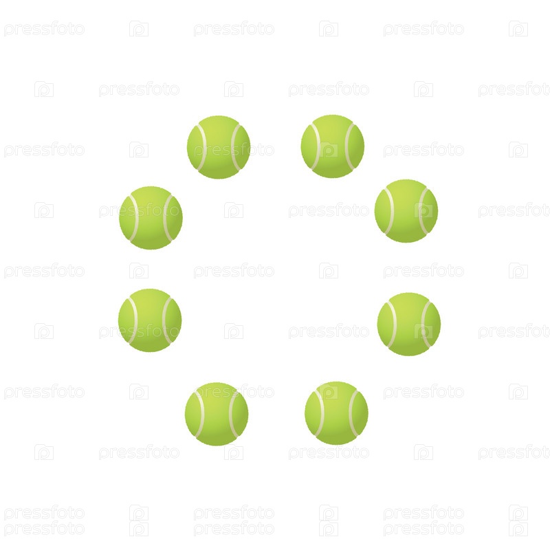 Восемь зеленых теннисных мячей на белом фоне