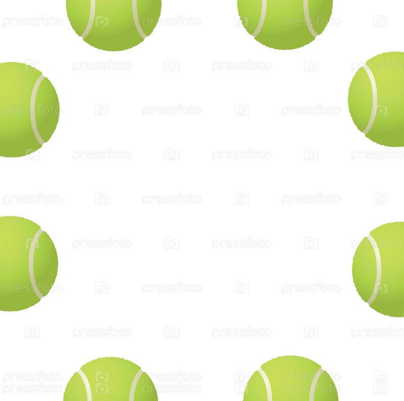 Восемь зеленых теннисных мячей на белом фоне