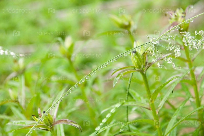 Зеленая трава с каплями воды
