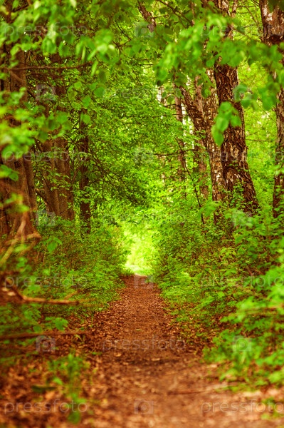 Путь в летнем зеленом лесу