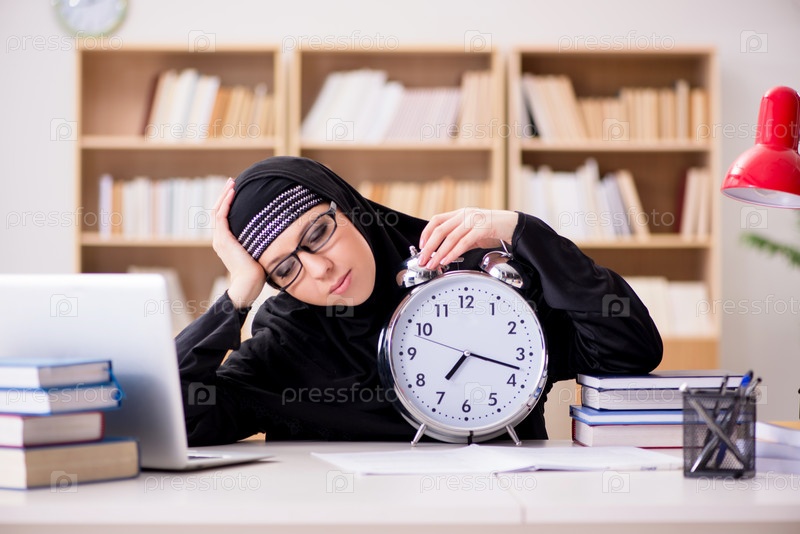 Мусульманка в хиджабе готовится к экзаменам