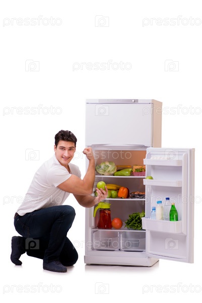 Человек рядом с холодильником
