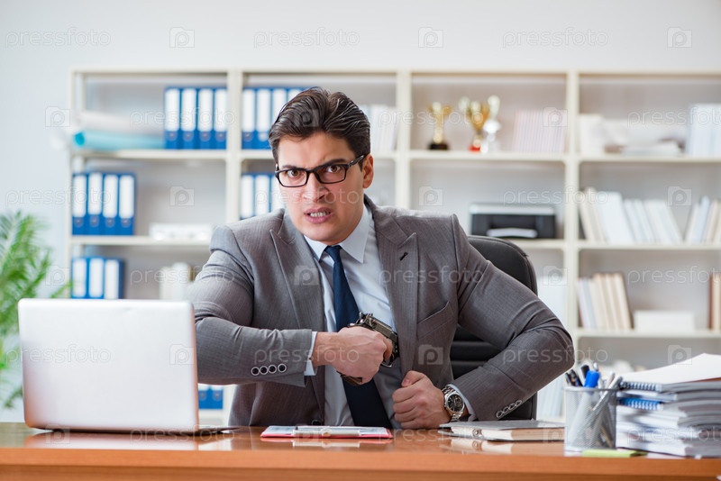 Сердитый агрессивный бизнесмен в офисе