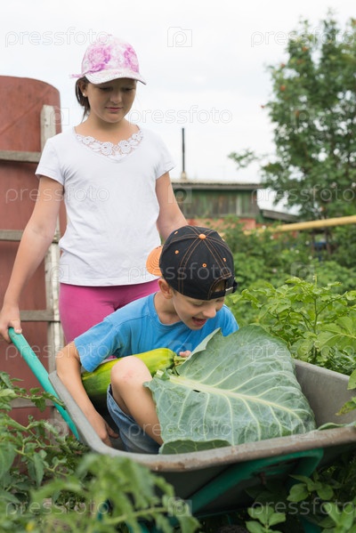 Дети собирают овощи