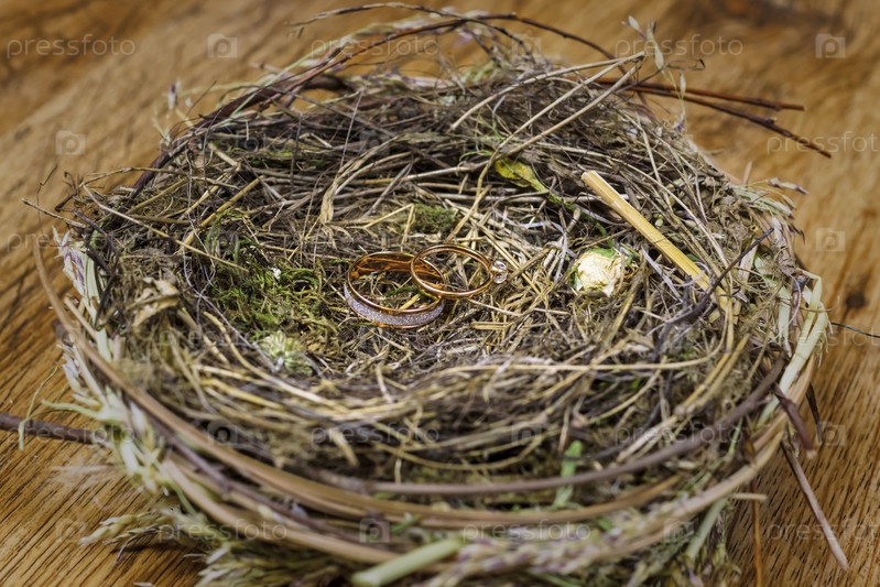 Стильные золотые обручальные кольца в птичьем гнезде