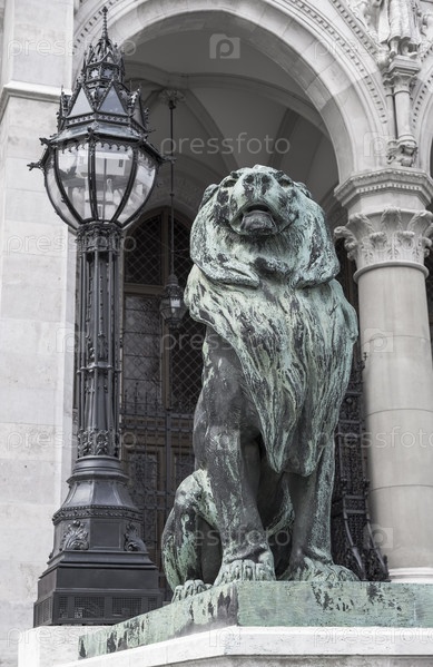 Скульптура льва и большой лампы