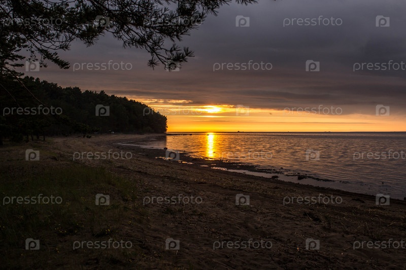 Закат на берегу Финского залива, в Ленинградской области, Россия