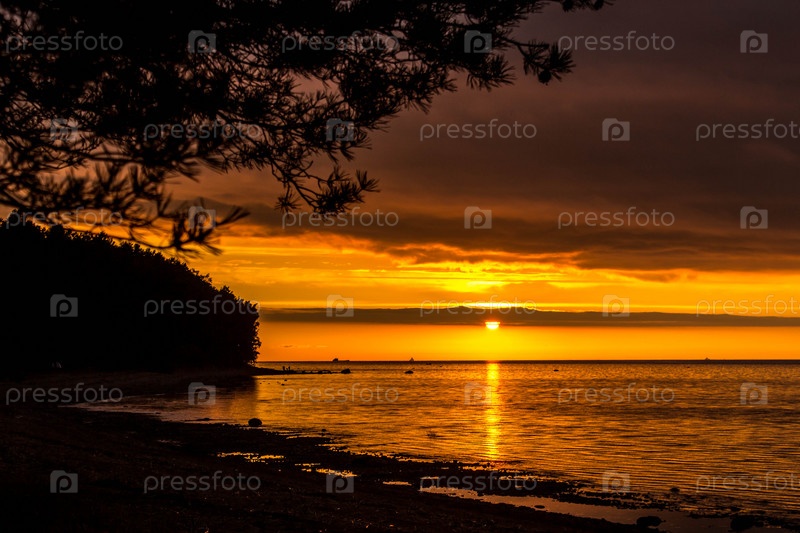 Закат на берегу Финского залива, в Ленинградской области, Россия