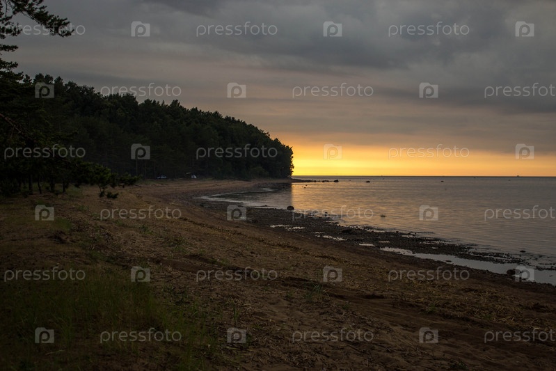 Пламенные закаты на берегу Финского залива, в Ленинградской области, Россия