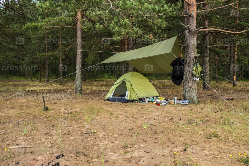 Палатка на песчаном берегу Финского залива, в Ленинградской области, Россия