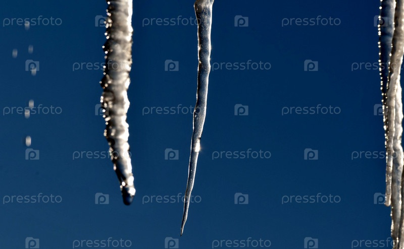 Ледяные сосульки на фоне голубого неба
