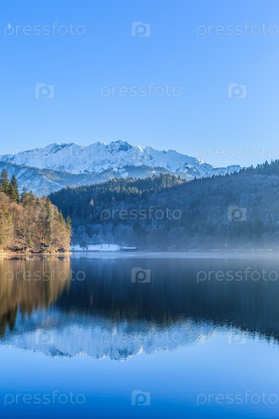 Зимнее утра озера Хехт возле Куфштайна в Тироле
