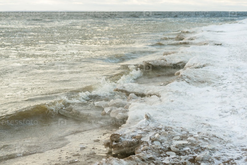 Поверхность моря покрыта снегом и льдом