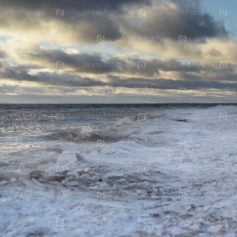 Поверхность моря покрыта снегом и льдом