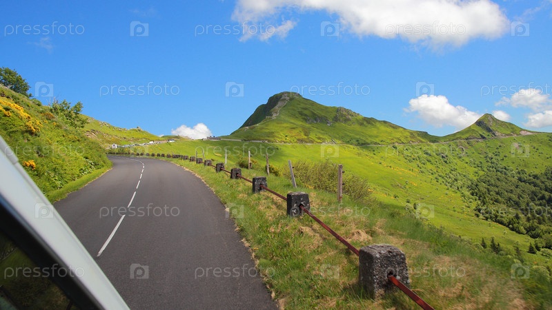 Движение по дороге в Пюи Марии, вулканические горы