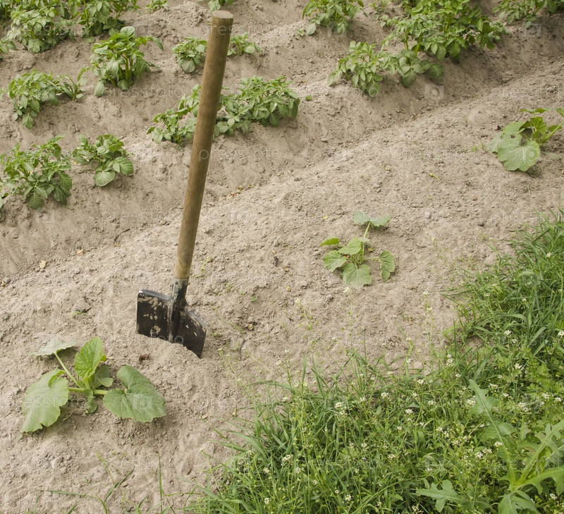 Лопата в земле в саду