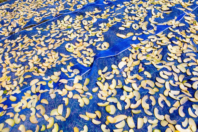 Нарезанные экзотические фрукты высыхают под солнцем