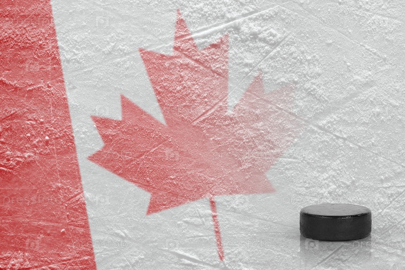 Изображение канадского флага с хоккейной шайбой