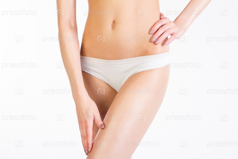 Стройное женское тело на белом фоне
