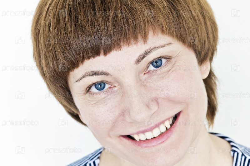 Красивое лицо женщины с рыжими волосами и голубыми глазами