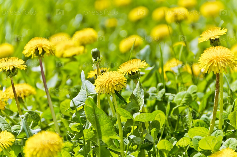 Зеленая трава и одуванчики