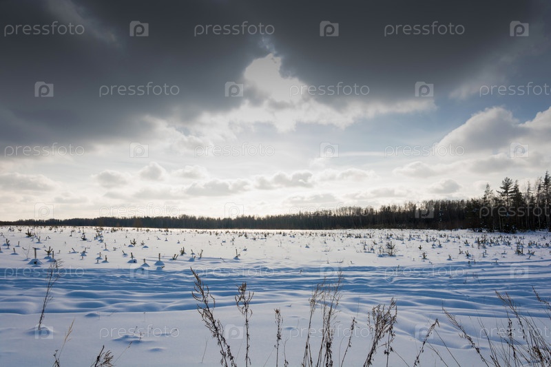 Красивый зимний пейзаж в солнечный морозный день