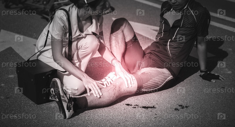 Травмированный человек получает первую помощь