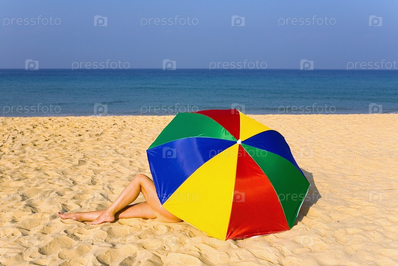 Элегантные женские ножки из-под красочного зонтика