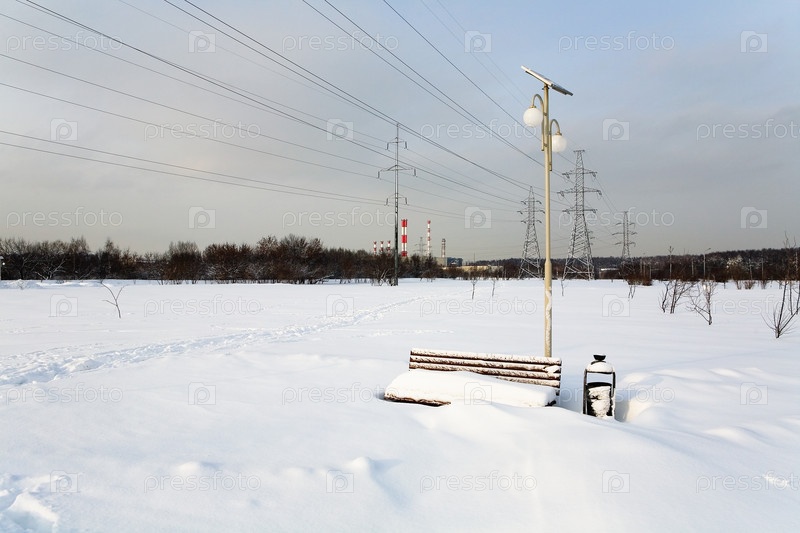 Стенд покрыт толстым слоем снега
