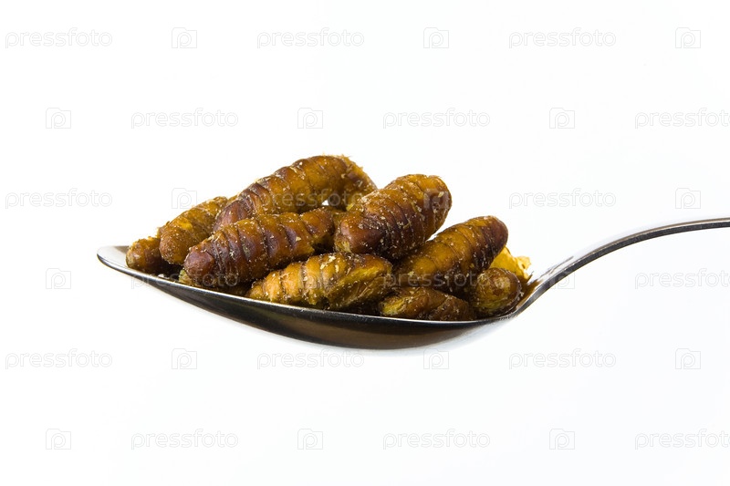 Гусеницы шелкопряда жареные с соевым соусом