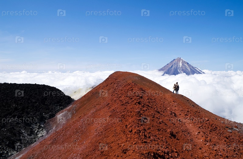 Силуэты людей на кратере Авачинского вулкана