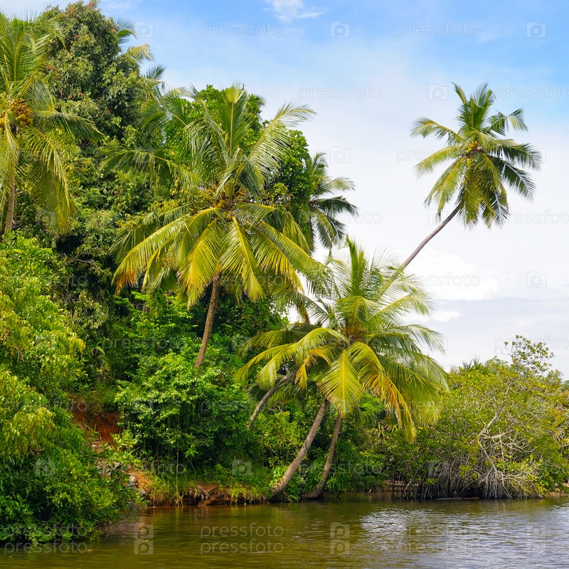 Тропический пальмовый лес на берегу реки