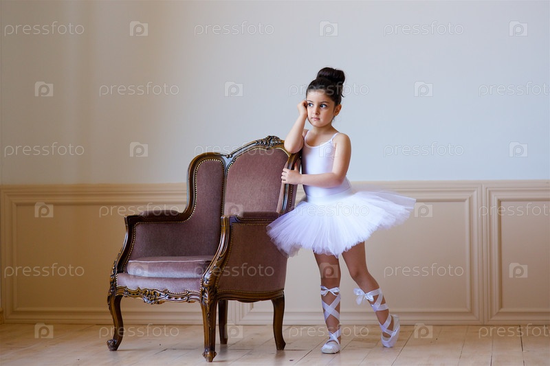 Маленькая девочка балерина в белой пачке