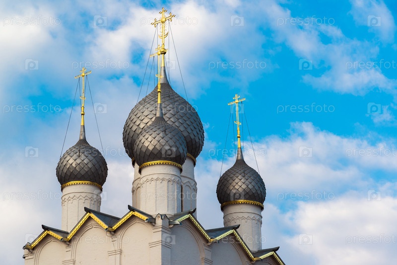 Купола Успенского собора Кремля в Ростове Великом, Россия