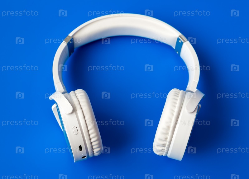 Беспроводные наушники на синем фоне