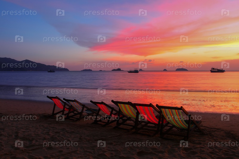 Тропический пляж закат на острове Ко Чанг