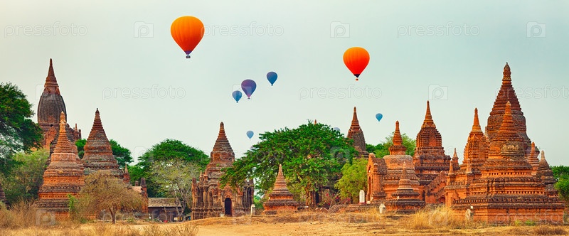 Воздушные шары над Храмами в Баган. Мьянма