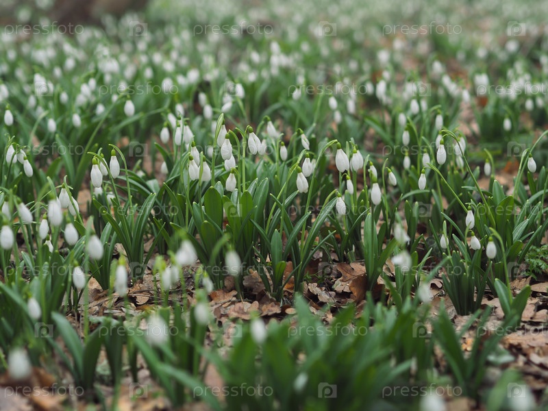 Поля цветущих подснежников