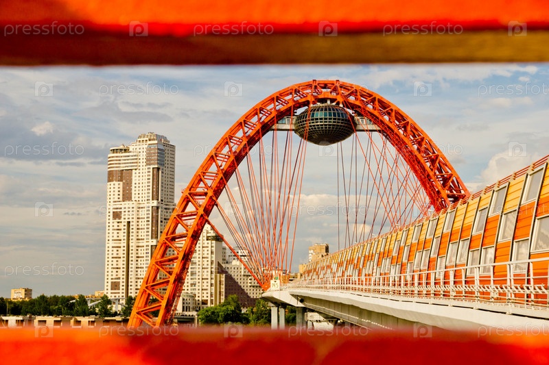 Красный автомобильный мост через реку