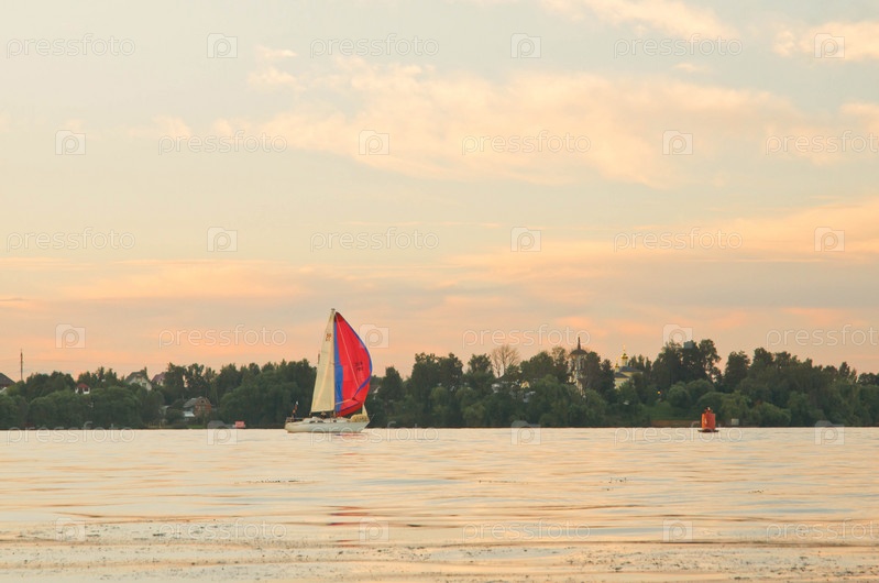 Яхты на озере в летний вечер