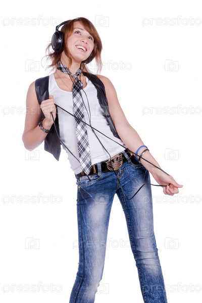Девушка слушает музыку в наушниках