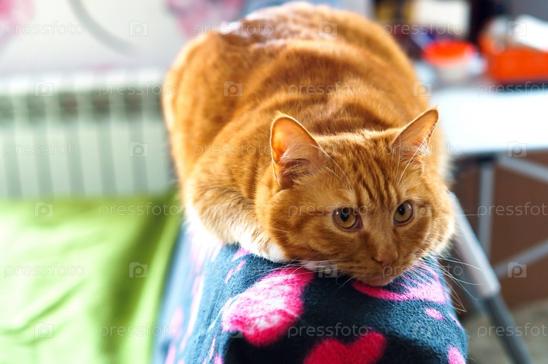 Большой рыжий кот на диване