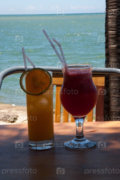 Красивый и вкусный коктейль на берегу моря