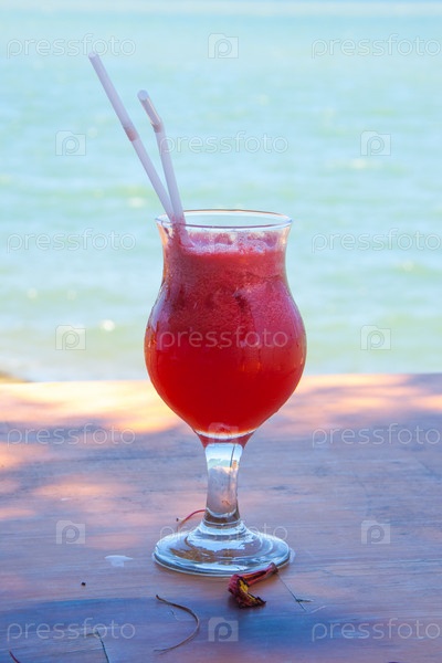 Красивый и вкусный коктейль на берегу моря