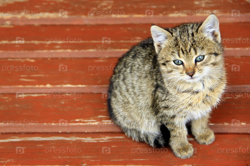 Котенок сидит на скамейке
